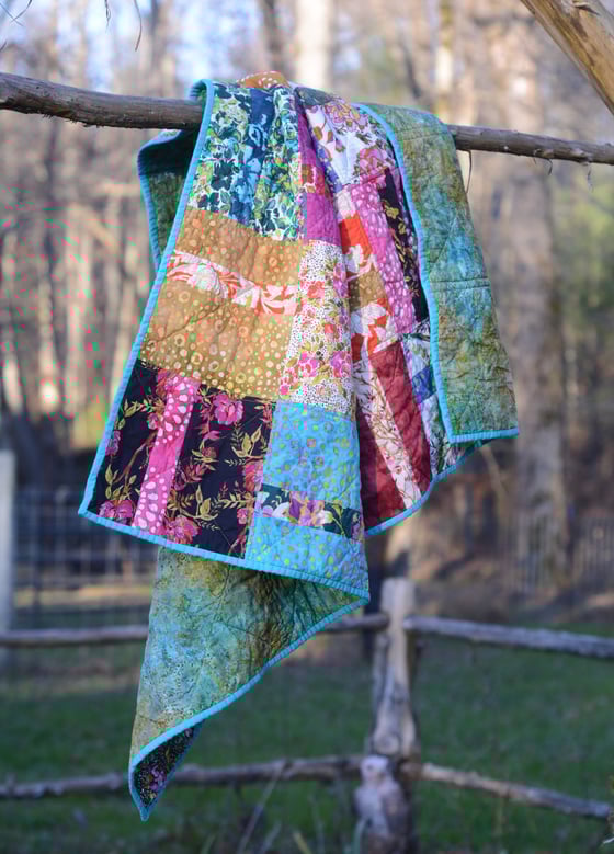 Batik Boho Quilt, Baby Quilt, Toddler Quilt, Throw Quilt, Bohemian Style, Half-Square Triangles